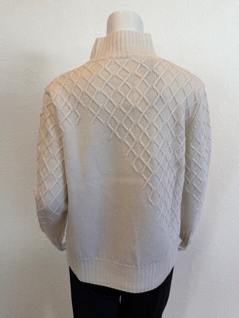 立体感のあるダイヤ編みが、シンプルながらも表情豊かな一枚です。