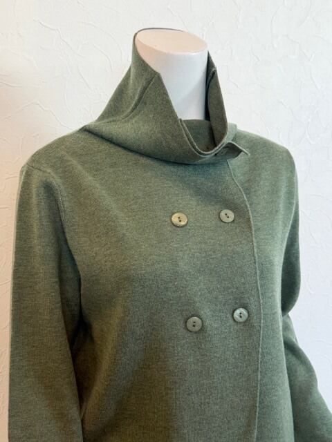 ダブルボタン仕様が程よいきちんと感を演出し、カーディガン感覚でありながらジャケットのような存在感を備えています。