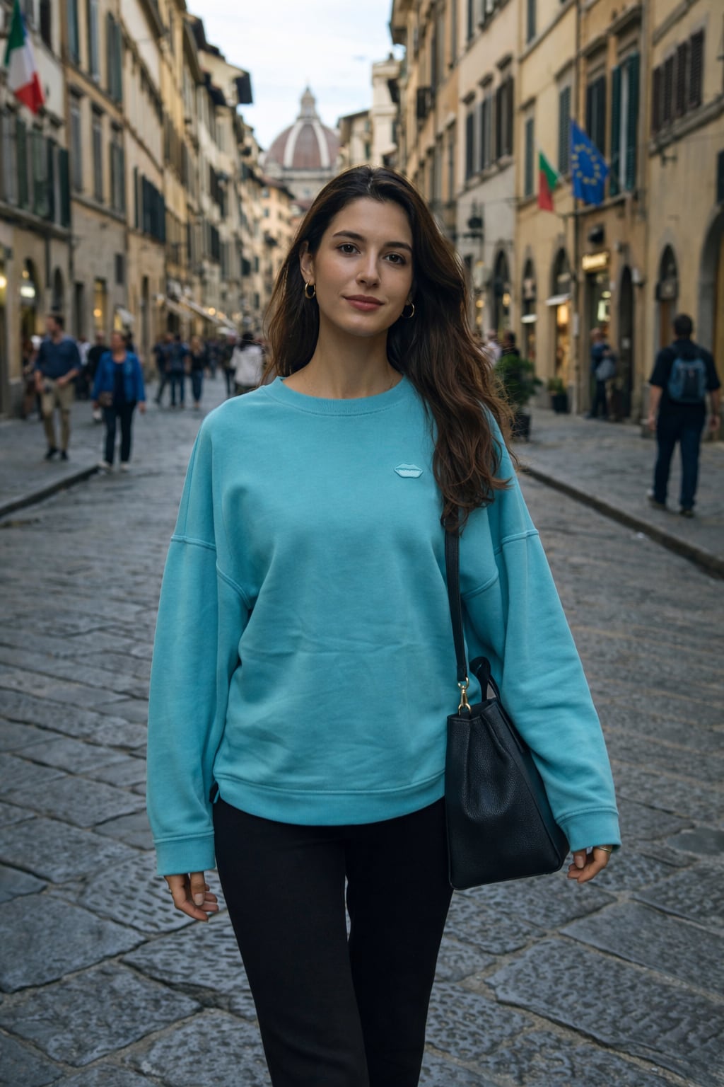 身体のラインを拾いにくく、一枚でもレイヤードでも美しく決まるデザインです。