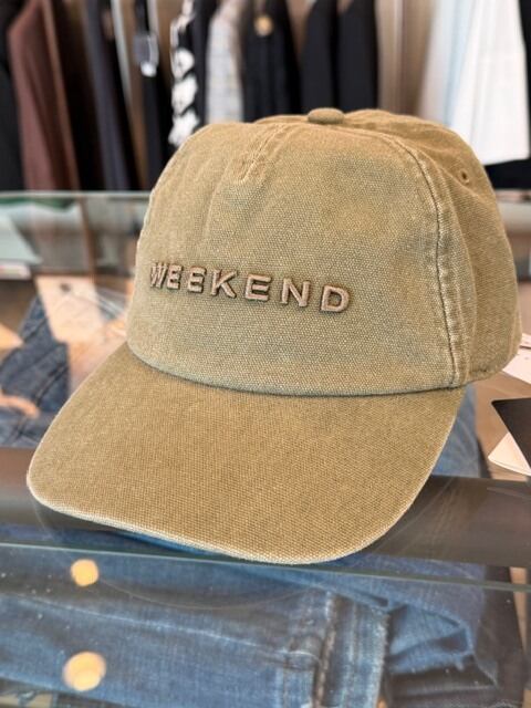 フロントには立体感のある「WEEKEND」ロゴ刺繍を施し、シンプルながらも存在感のあるデザインに。