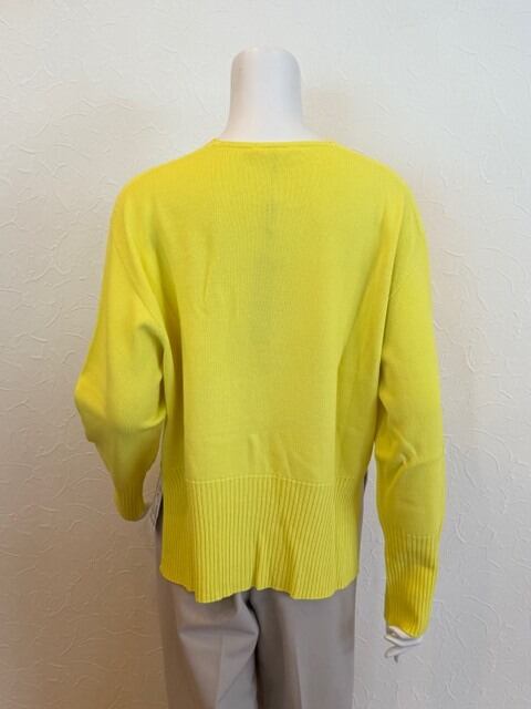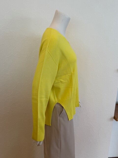 コーディネートを一気に華やかにしてくれる、鮮やかなイエローカラーのVネックニット。